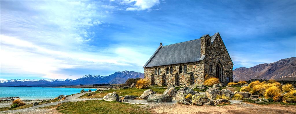 1日目は、クライストチャーチからマウントクックまで快適なコーチで南島の景色を楽しみながら移動します。素敵なターコイズブルーの水と有名な「善き羊飼いの教会」があるテカポ湖に立ち寄ります。