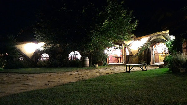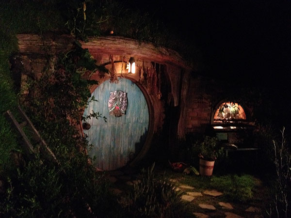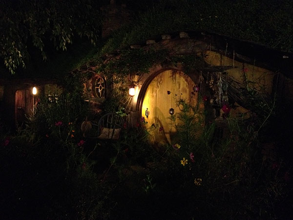 日も暮れ、専用のランタンを片手に夜の村を歩きます。村の家々の灯りや煙突から立ち上る煙を見るとまるでホビットが本当に住んでいるかのよう!
