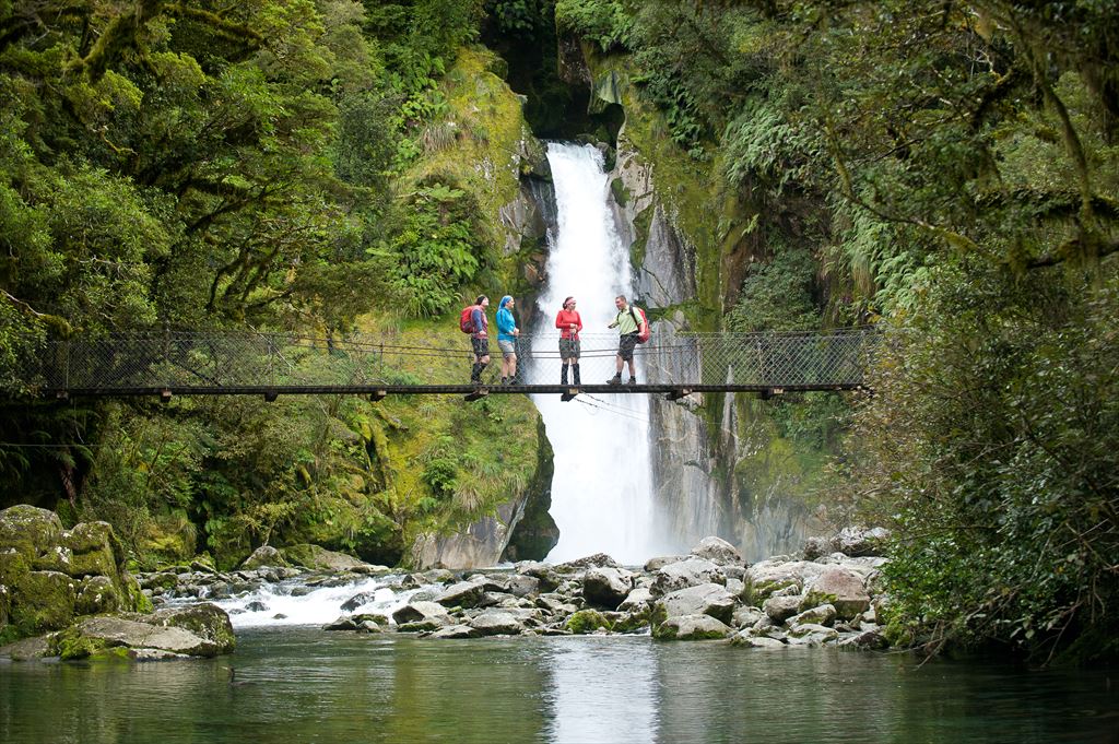 | 8日目 | ルートバーン・フラットの平原樹林帯を下っていきます。様々な種類のブナ林、いくつもの吊り橋を渡りながらルートバーン川に沿うように進みます。川岸での昼食後、ロードエンドまで戻ります。トラック終了後、バスにて、グレノーキー・ロードを経由し、クイーンズタウンへ帰着します。